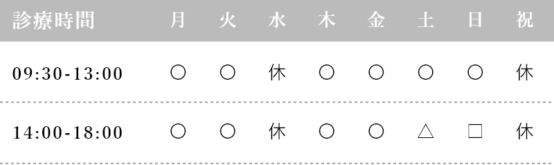 △:土曜 14:00-17:00 □:日曜 14:00-16:00