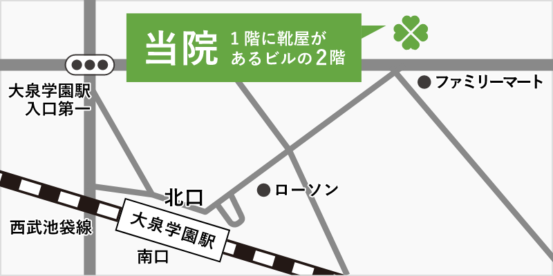 大泉学園駅から徒歩3分、基本予約制で待ち時間も少なく、毎週土日も午前・午後ともに診療しています。急な痛みやトラブルにも対応しており、お子さまからご高齢の方まで、ご家族みんなで通える環境を整えています。